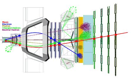 Na prática somente partículas com tempo de vida maior que um milionésimo de segundo é que conseguem atravessar todo o detector e serem identificadas. Além do próton e do nêutron, existem os mésons \pi e kaons, além do elétron e o seu parente mais massivo o múon. Importante dizer que essas partículas produzidas em aceleradores, viajam a velocidades próximas da luz, por isso apesar de tempos diminutos de milionésimo de segundo, são suficientes para atravessarem um detector, devido a dilatação temporal que ocorre em objetos relativísticos. O restante das outras partículas, tem tempo de vida tão pequenas, que mesmo nestas velocidades, não conseguem chegar aos diferentes detectores para serem identificadas. Para se ter uma ideia, uma família de partículas conhecidas como “charmosas”, têm tempo de vida média de um trilionésimo de segundo e caminha da ordem de um centímetro dentro de um detector quando produzida a velocidades próxima da velocidade da luz (300.000Km/s).