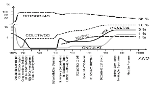 Existem inúmeras interpretações para os fenômenos quânticos, que estão fora do escopo deste artigo. Mas para se ter uma ideia da dificuldade, abaixo apresento um diagrama das várias correntes existentes em função da popularidade de cada uma e em função do tempo, segundo a visão do Prof. Osvaldo Pessoa Jr. professor de filosofia da USP.